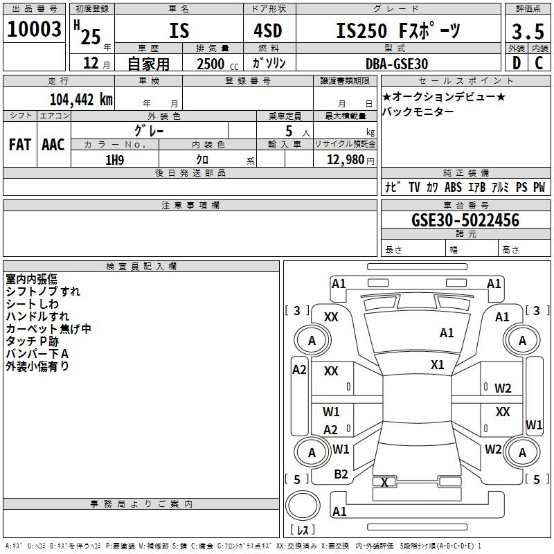 LEXUS IS IS250 F SPORT - лот 10003