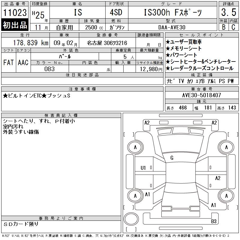 LEXUS IS IS300H F SPORT - лот 11023