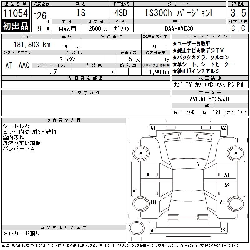LEXUS IS IS300H VERSION L - лот 11054