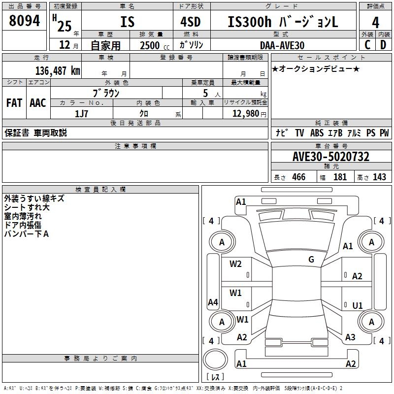 LEXUS IS IS300H VERSION L - лот 8094