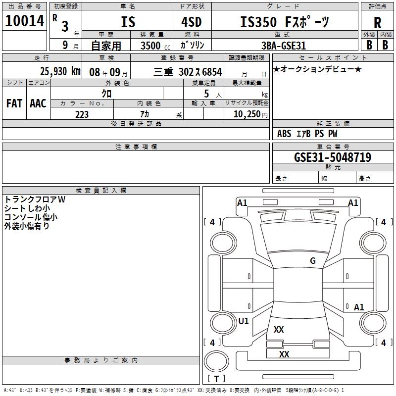 LEXUS IS IS350 F SPORT - лот 10014