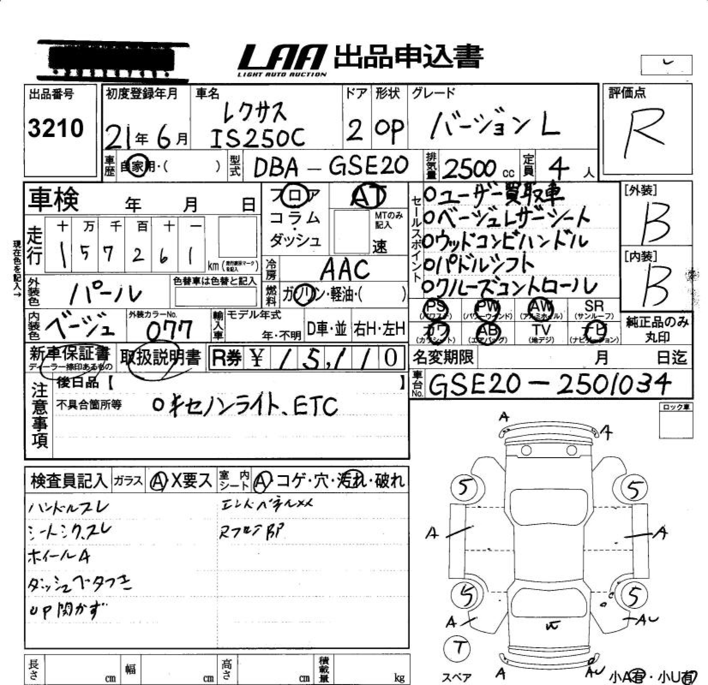 LEXUS IS IS250C VERSION L - лот 3210