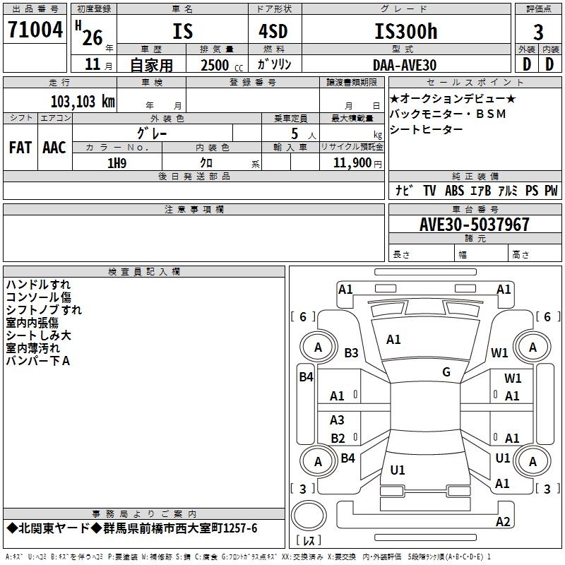 LEXUS IS IS300h - лот 71004