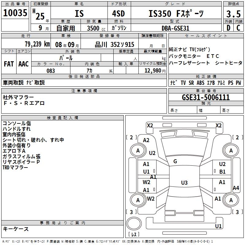 LEXUS IS IS350 F SPORT - лот 10035