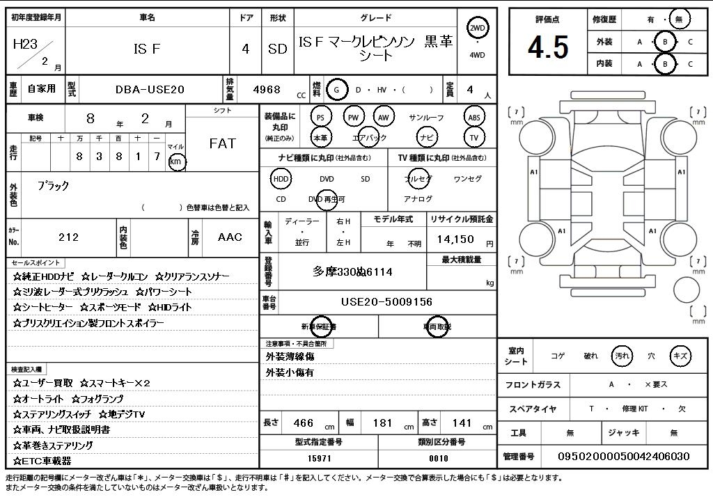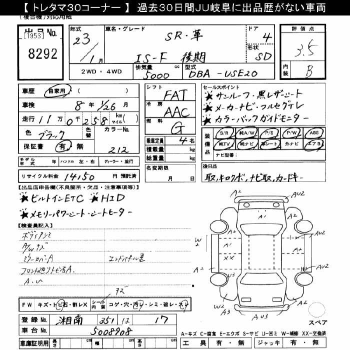 Статистика продаж LEXUS IS F с аукционов Японии