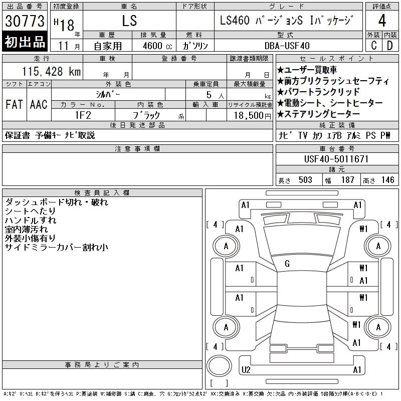 LEXUS LS LS460 VERSION S I PACK - лот 30773