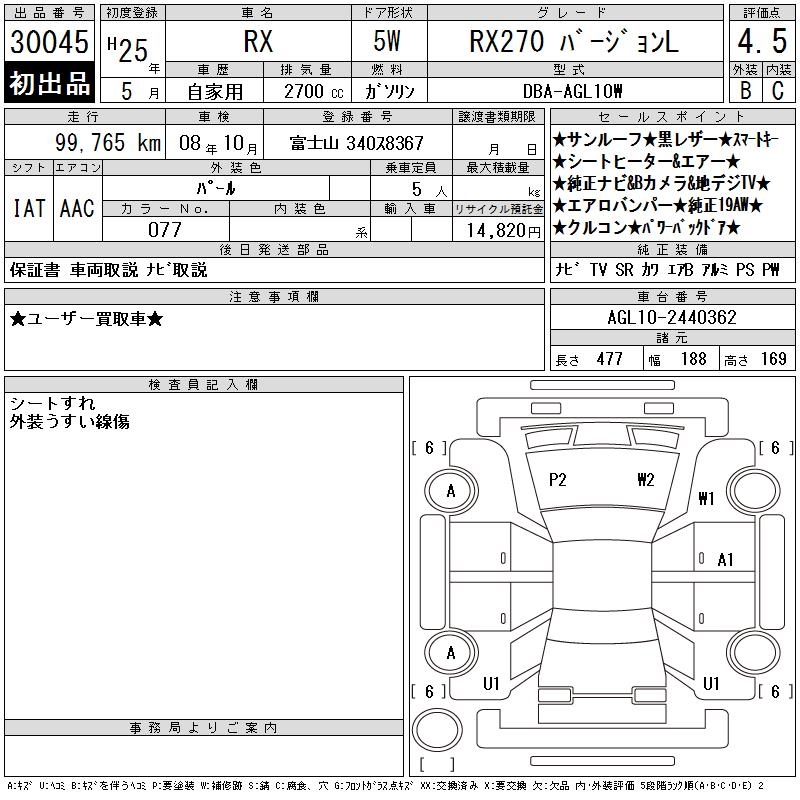 LEXUS RX RX270 VERSION L - лот 30045