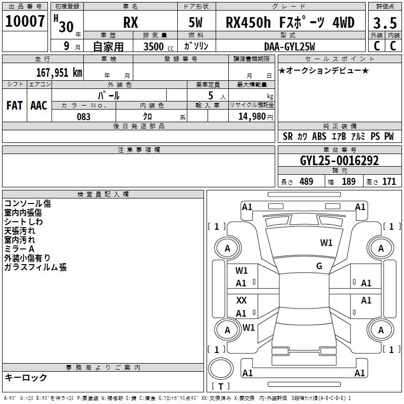 LEXUS RX RX450H F SPORT 4WD - лот 10007