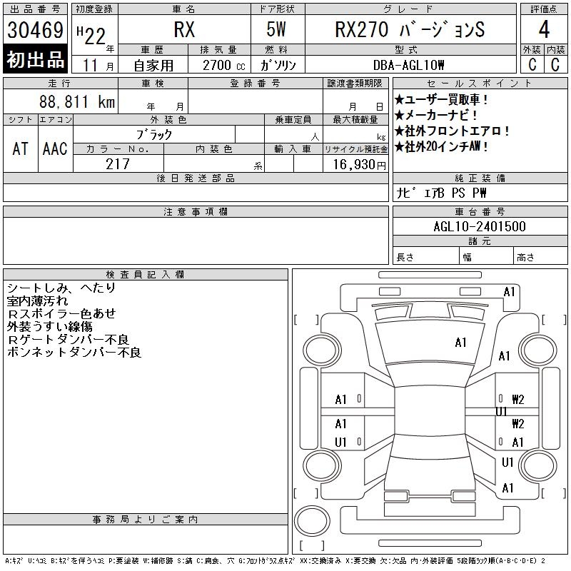 LEXUS RX RX270 VERSION S - лот 30469