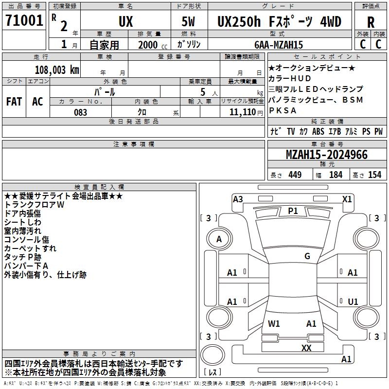 LEXUS UX UX250H F SPORT 4WD - лот 71001
