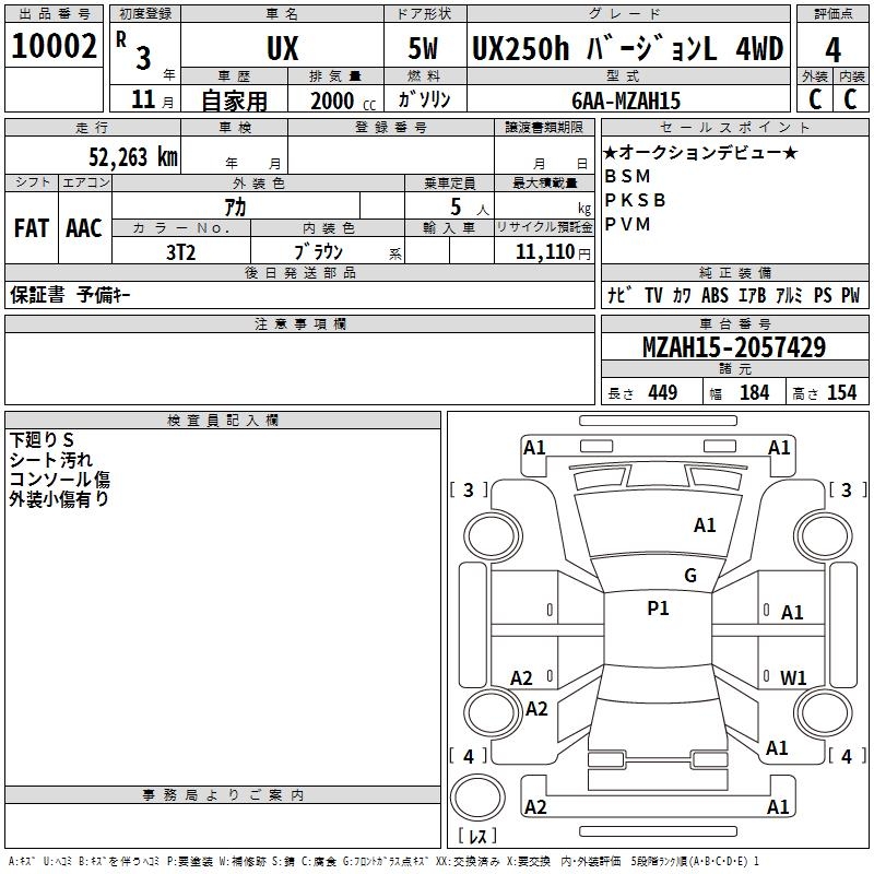 LEXUS UX UX250H VERSION L 4WD - лот 10002