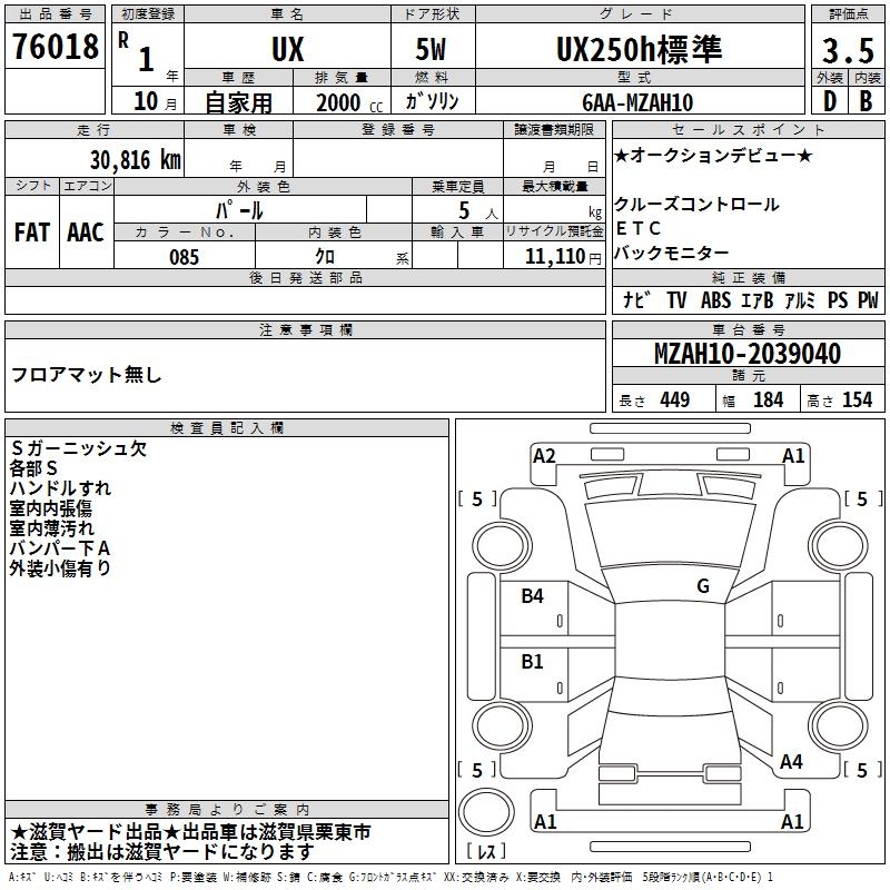 LEXUS UX UX250H STANDARD - лот 76018