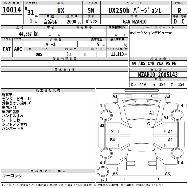 LEXUS UX UX250H VERSION L - лот 10014