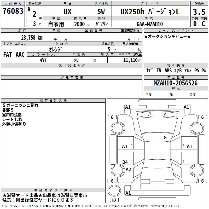 LEXUS UX UX250H VERSION L - лот 76083