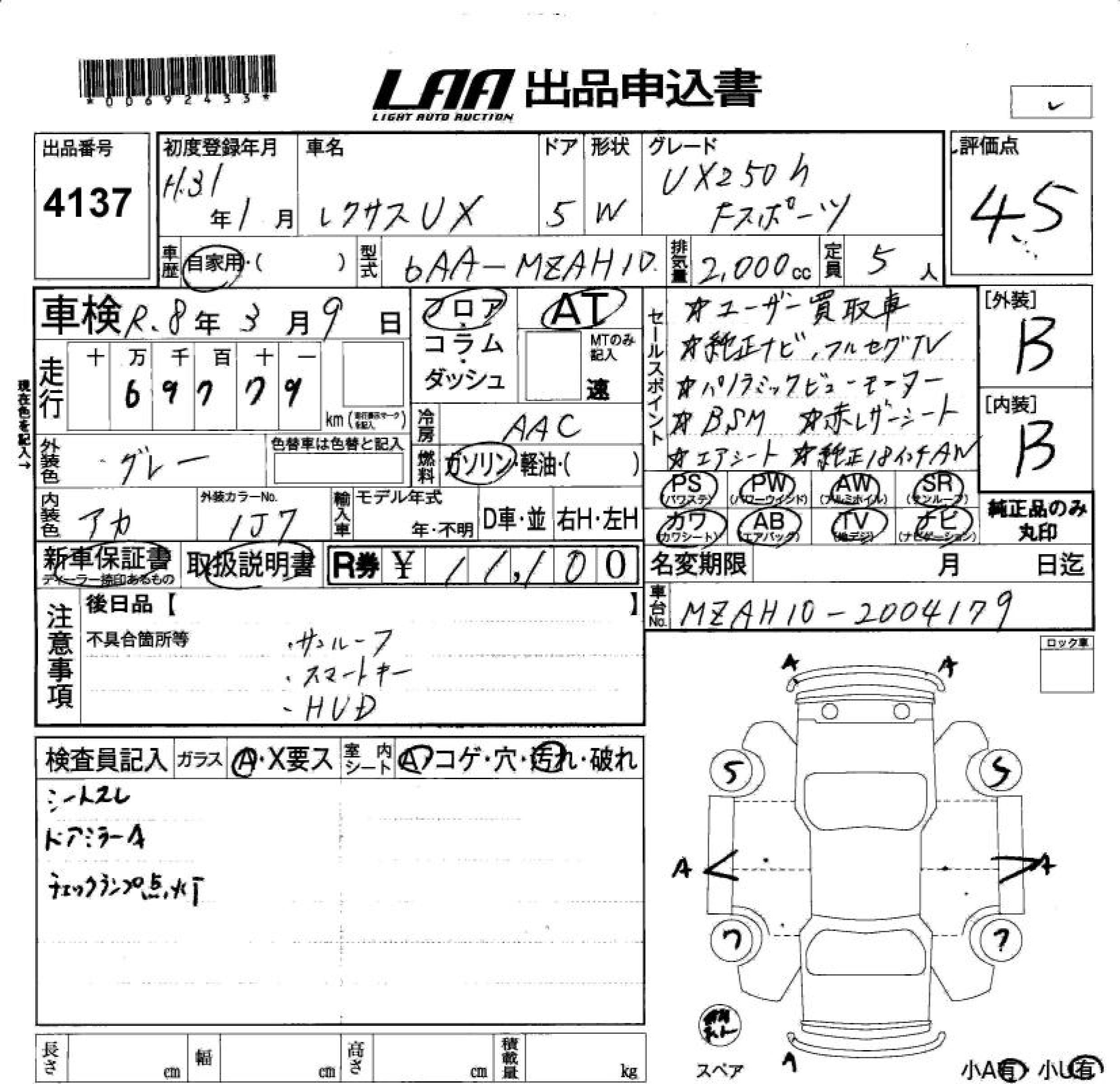 LEXUS UX UX250H F SPORT - лот 4137
