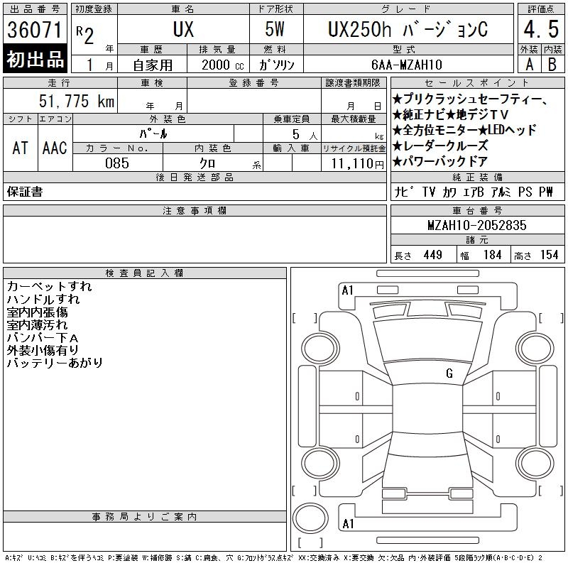 LEXUS UX UX250H VERSION C - лот 36071