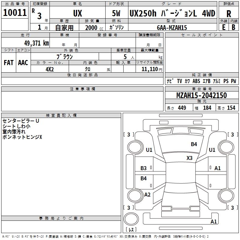 LEXUS UX UX250H VERSION L 4WD - лот 10011