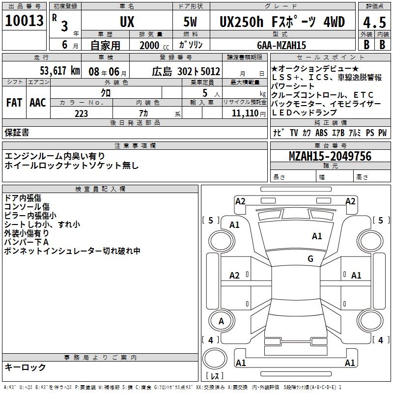 LEXUS UX UX250H F SPORT 4WD - лот 10013