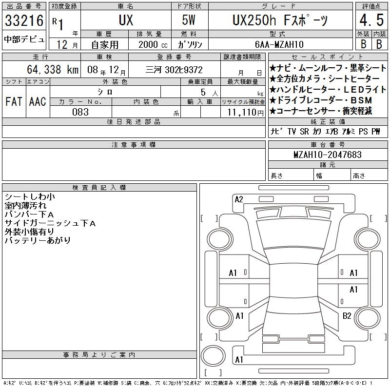 LEXUS UX UX250H F SPORT - лот 33216