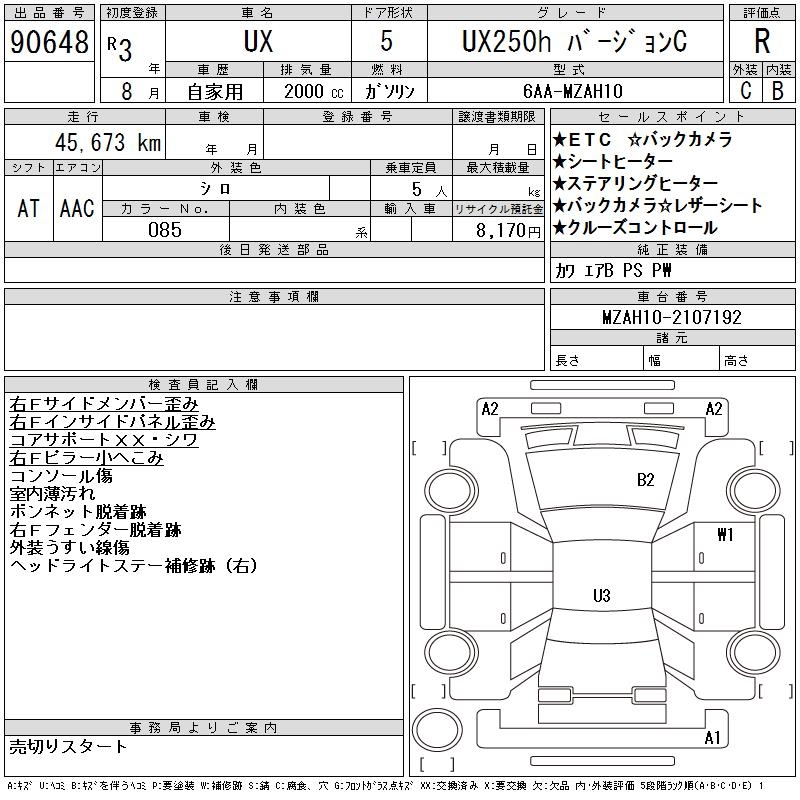 LEXUS UX UX250H VERSION C - лот 90648