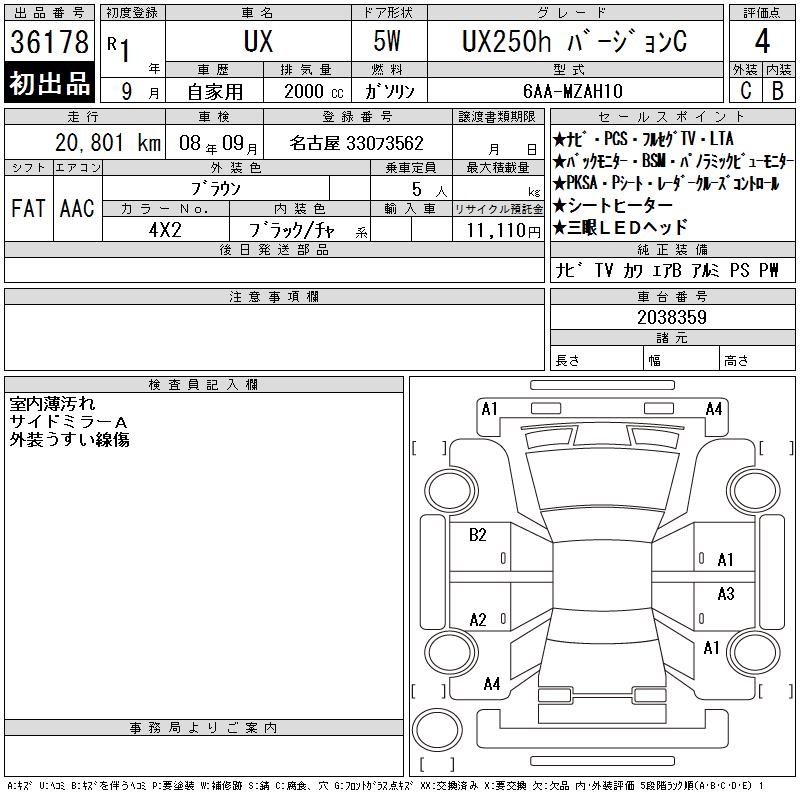 LEXUS UX UX250H VERSION C - лот 36178