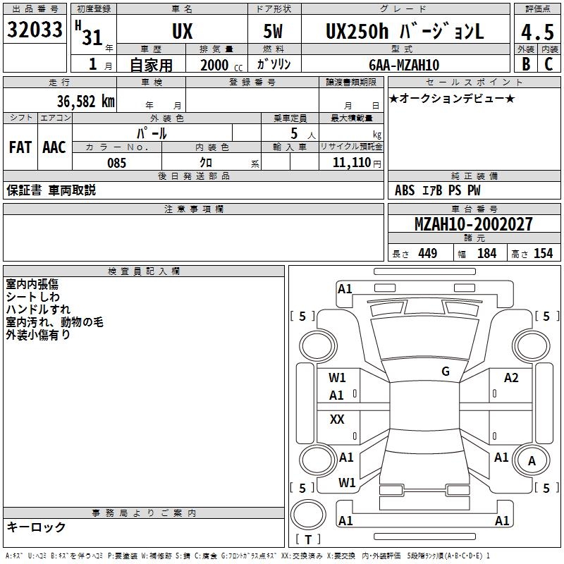 LEXUS UX UX250H VERSION L - лот 32033