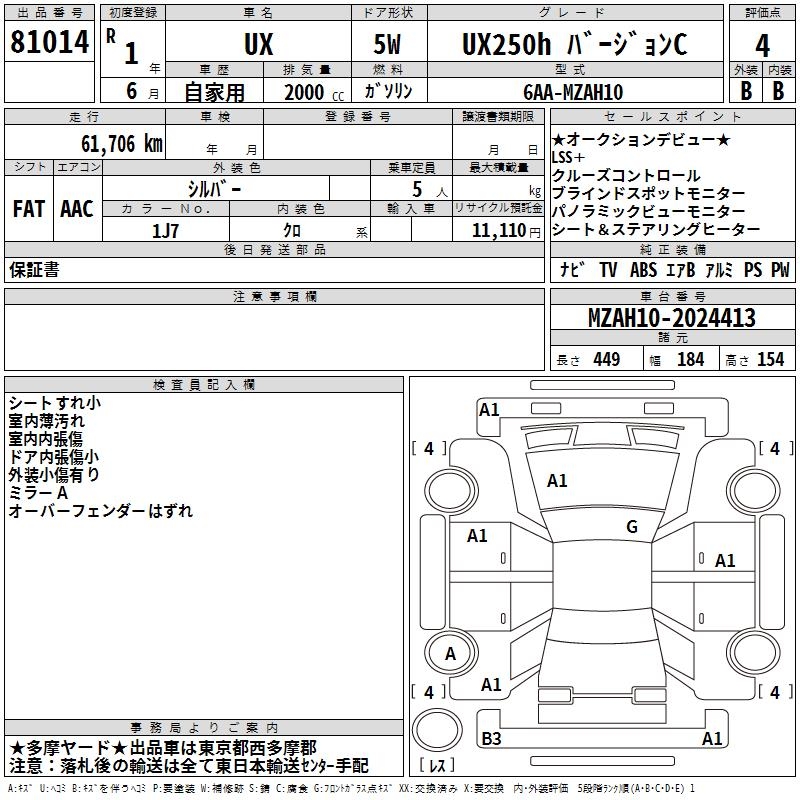 LEXUS UX UX250H VERSION C - лот 81014