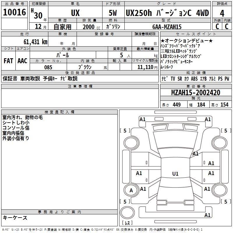 LEXUS UX UX250H VERSION C 4WD - лот 10016