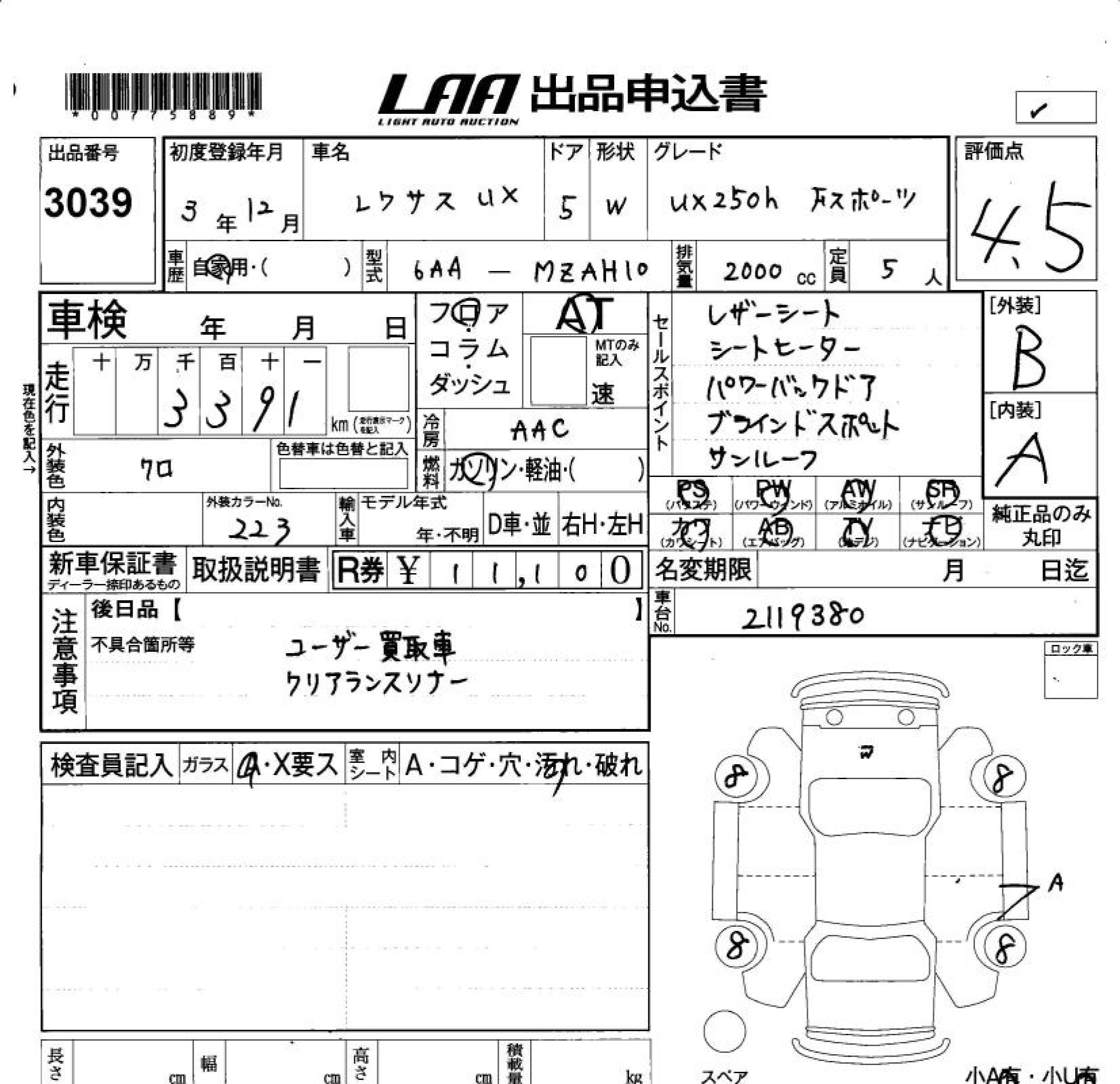 LEXUS UX - лот 3039