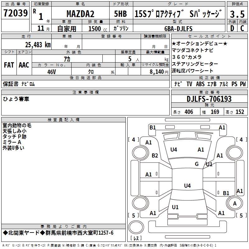 MAZDA 2 15S PRO ACTIVE S PACKAGE - лот 72039