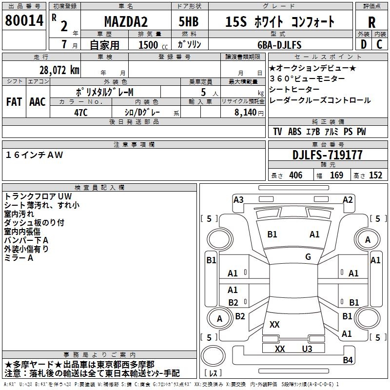 MAZDA 2 15S WHITE COMFORT - лот 80014