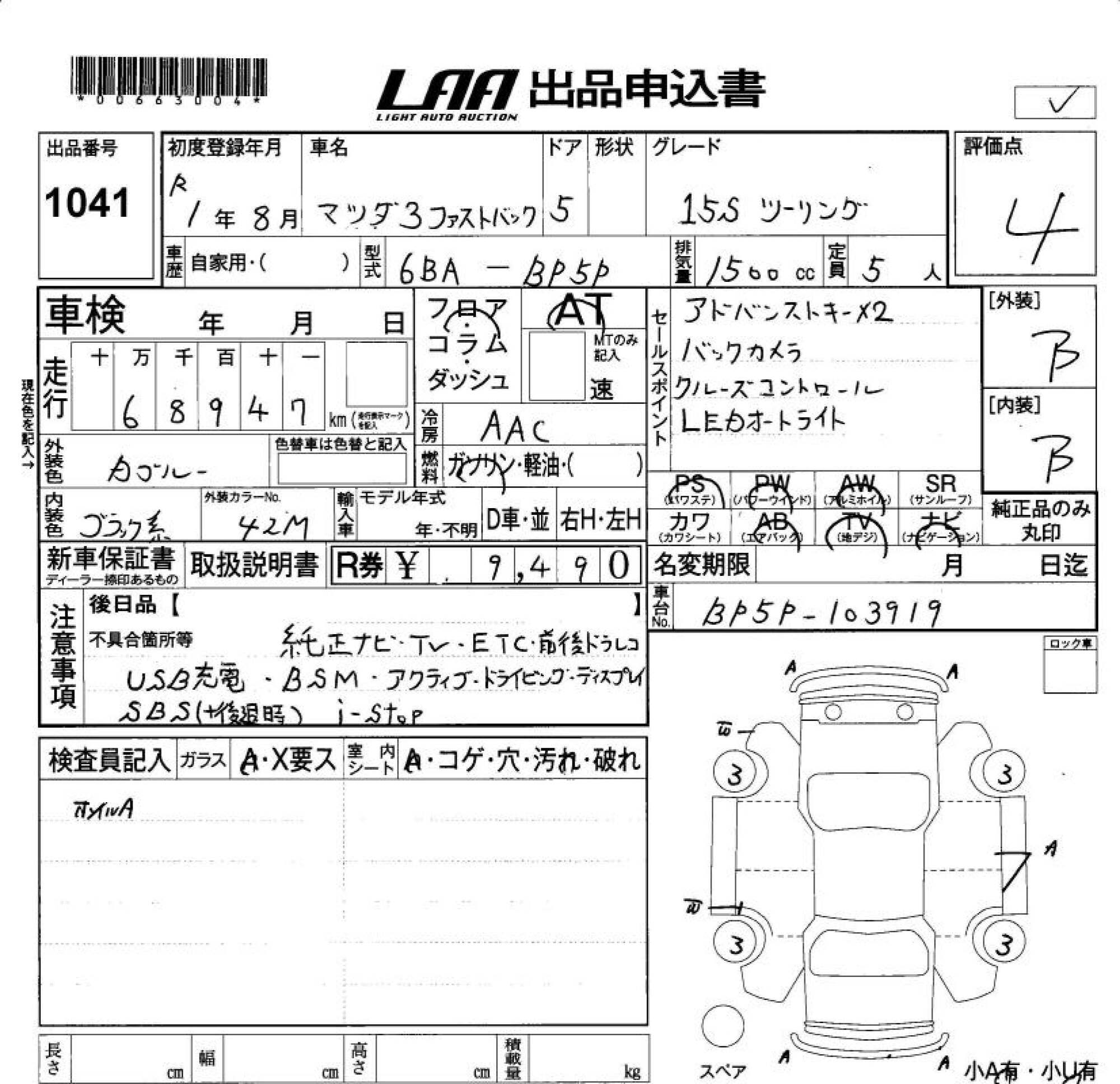 MAZDA 3 FASTBACK - лот 1041