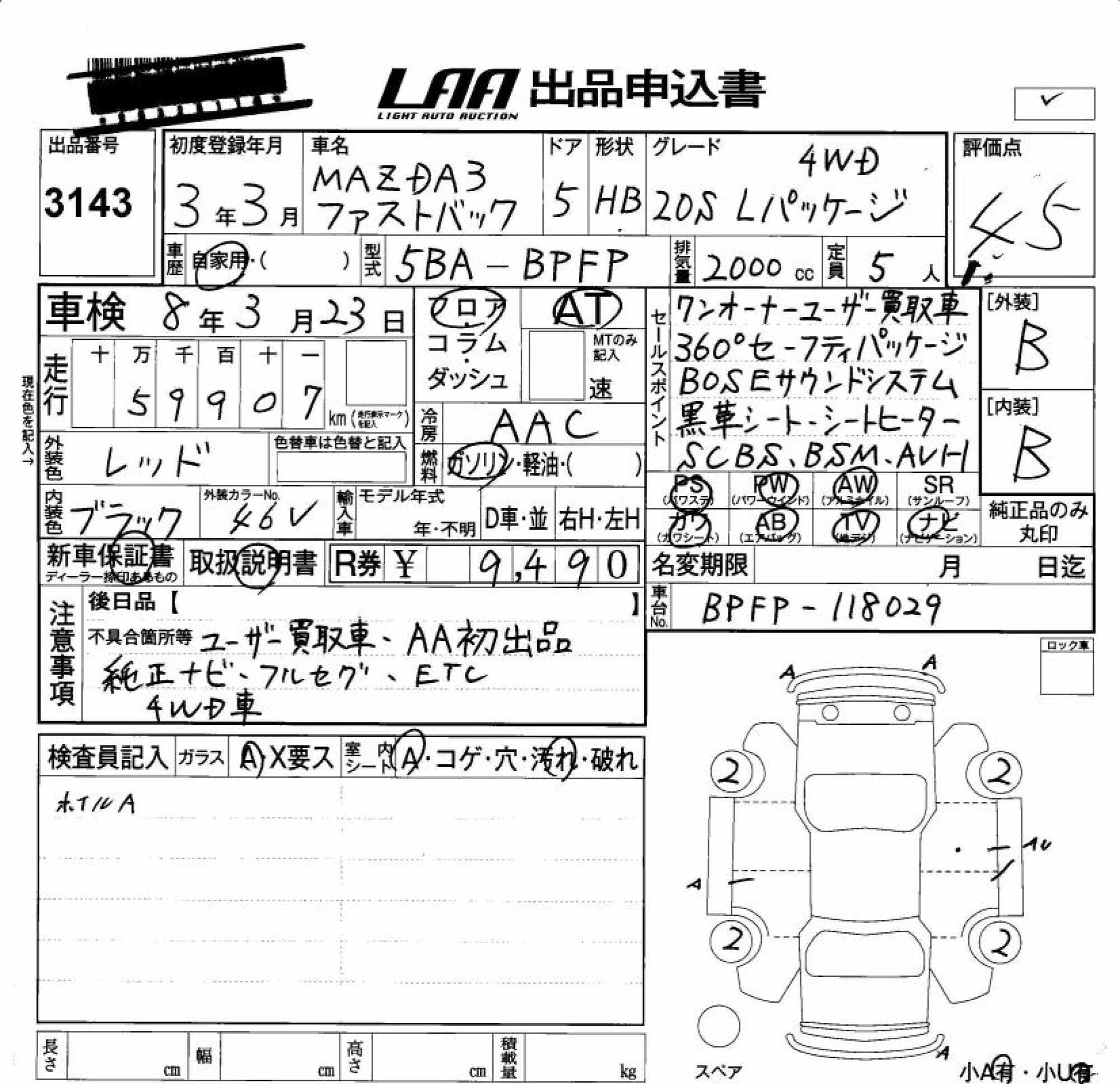 MAZDA 3 FASTBACK - лот 3143