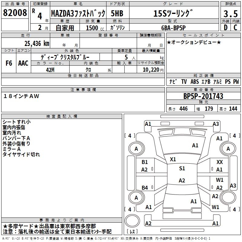 MAZDA 3 FASTBACK 15S TOURING - лот 82008