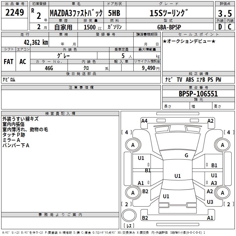 MAZDA 3 FASTBACK 15S TOURING - лот 2249