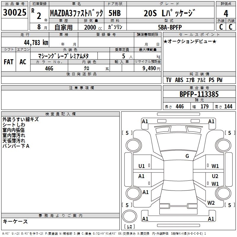 MAZDA 3 FASTBACK 20S L PACKAGE - лот 30025