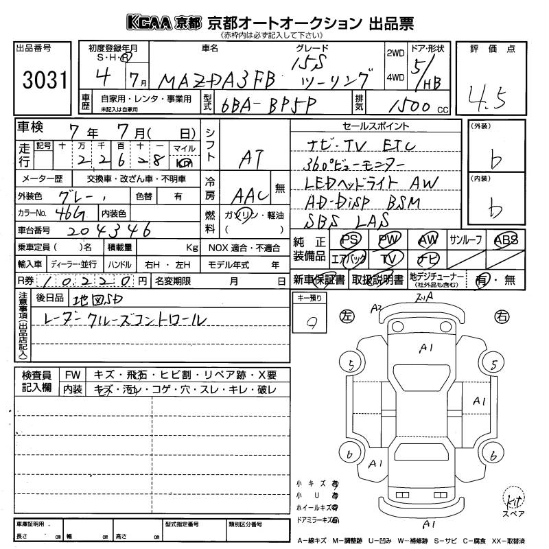 MAZDA 3 FASTBACK 15S TOURING - лот 3031