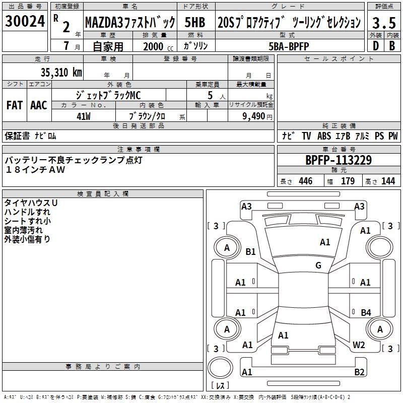 MAZDA 3 FASTBACK 20S PRO ACTIVE TOURING SELECTION - лот 30024