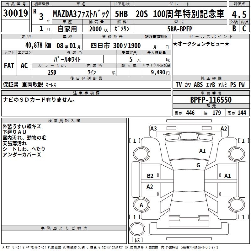 MAZDA 3 FASTBACK 20S 100th - лот 30019
