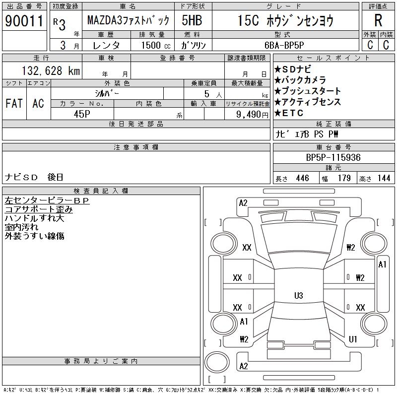 MAZDA 3 FASTBACK 15C HOWE JINSENYOU - лот 90011