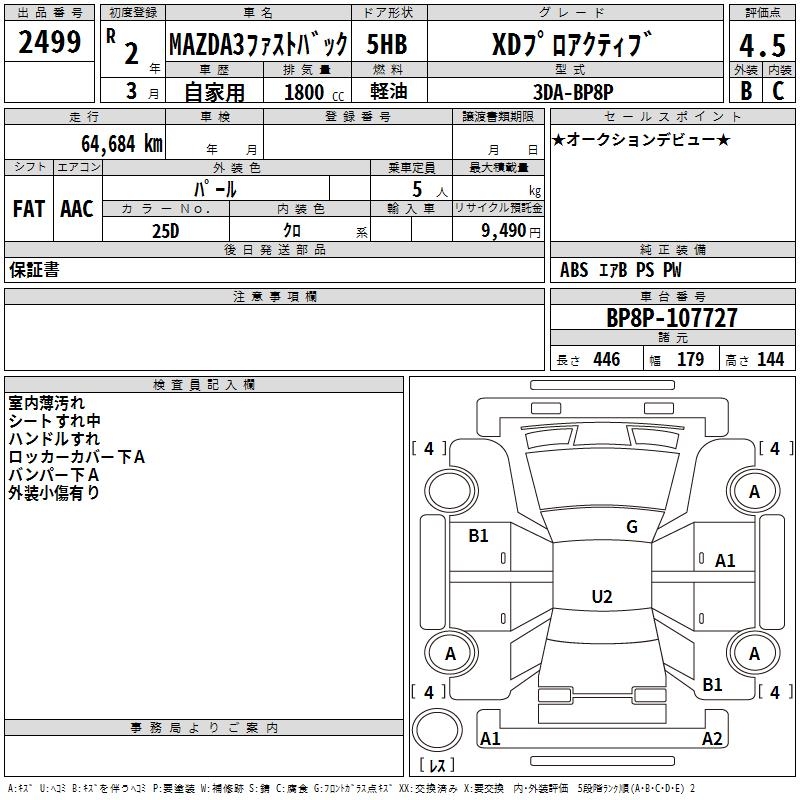 MAZDA 3 FASTBACK XD PRO ACTIVE - лот 2499