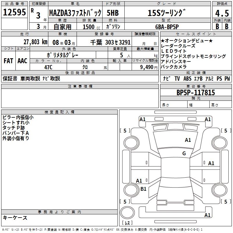 MAZDA 3 FASTBACK 15S TOURING - лот 12595