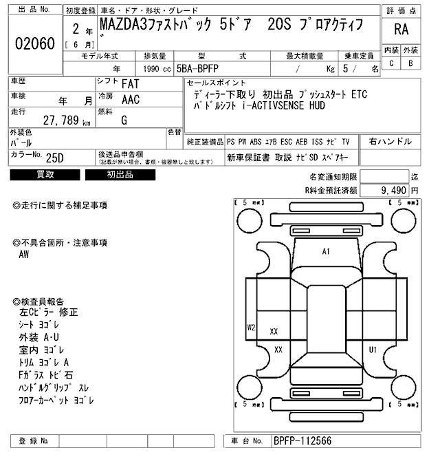 MAZDA 3 FASTBACK 20S PRO ACTIVE - лот 2060