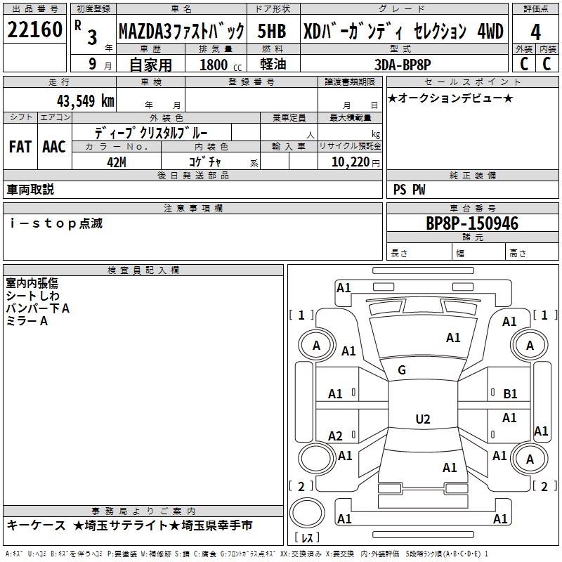 MAZDA 3 FASTBACK XD BAR GUN TI SELECT 4WD - лот 22160