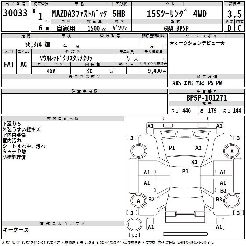 MAZDA 3 FASTBACK 15S TOURING 4WD - лот 30033