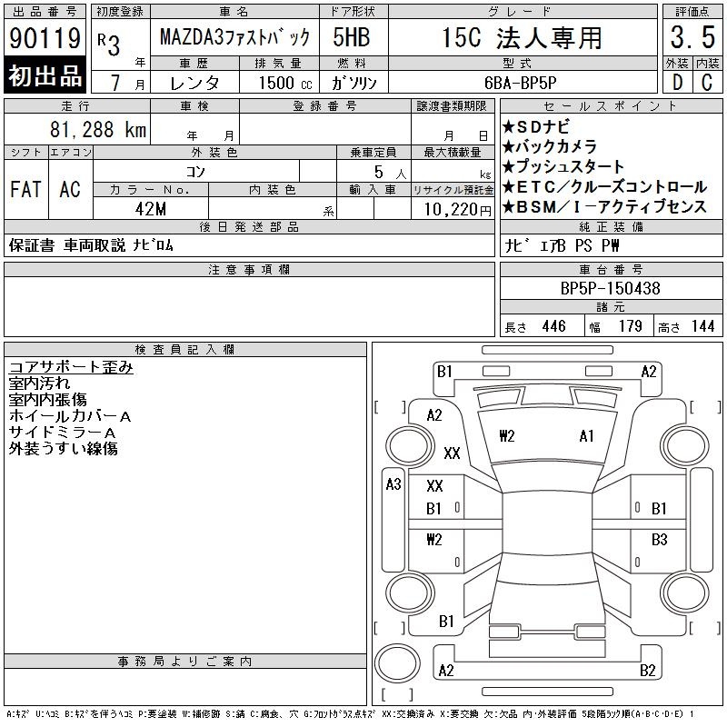 MAZDA 3 FASTBACK 15C HOWE JINSENYOU - лот 90119