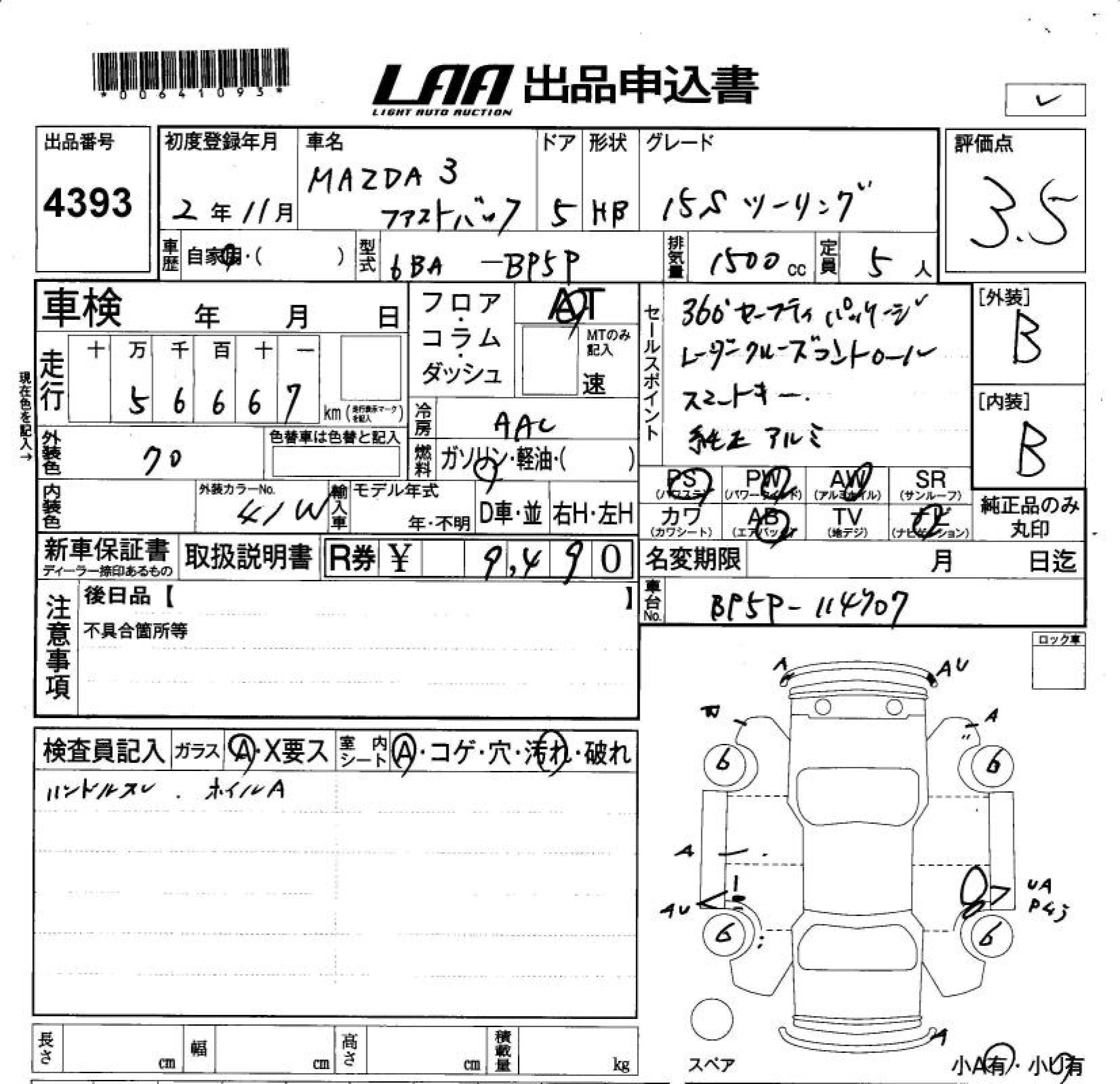 MAZDA 3 FASTBACK 15S TOURING - лот 4393