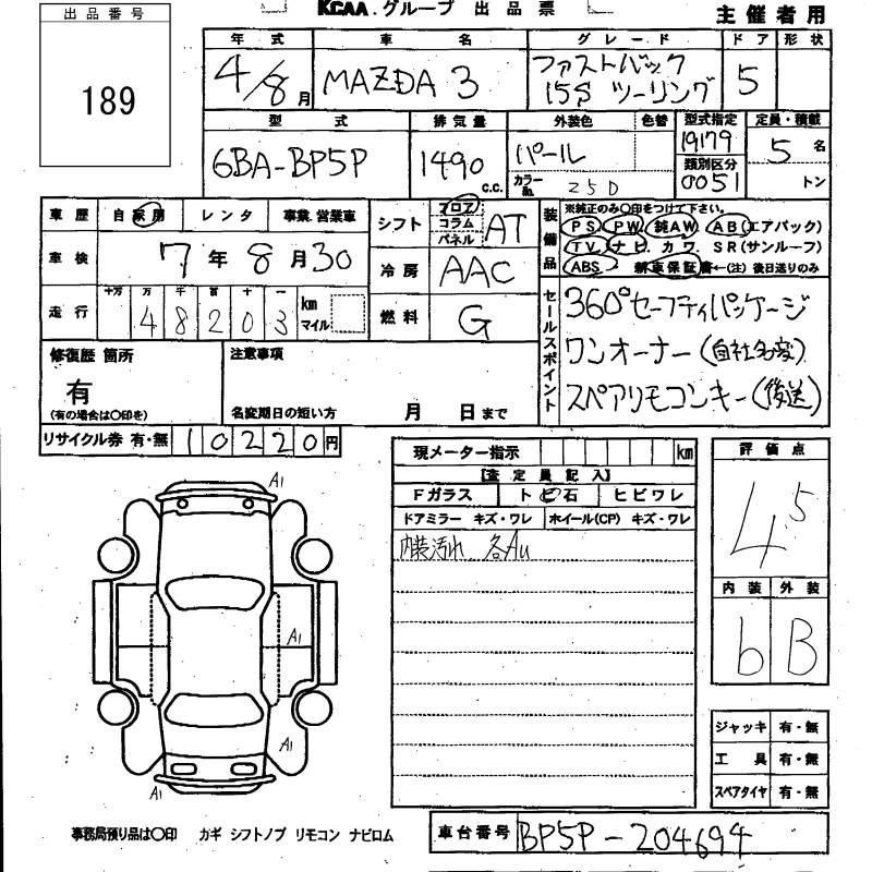 MAZDA 3 FASTBACK 15S TOURING - лот 189
