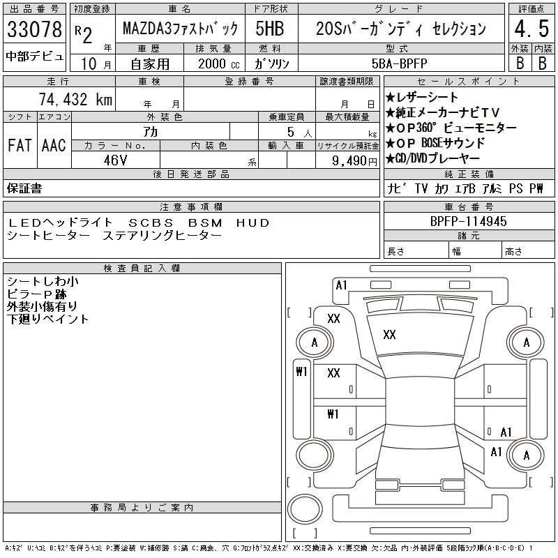 MAZDA 3 FASTBACK 20S BAR GUN TI SELECTION - лот 33078