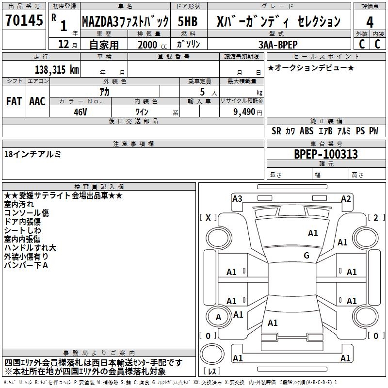 MAZDA 3 FASTBACK X BAR GUN TI SELECTION - лот 70145